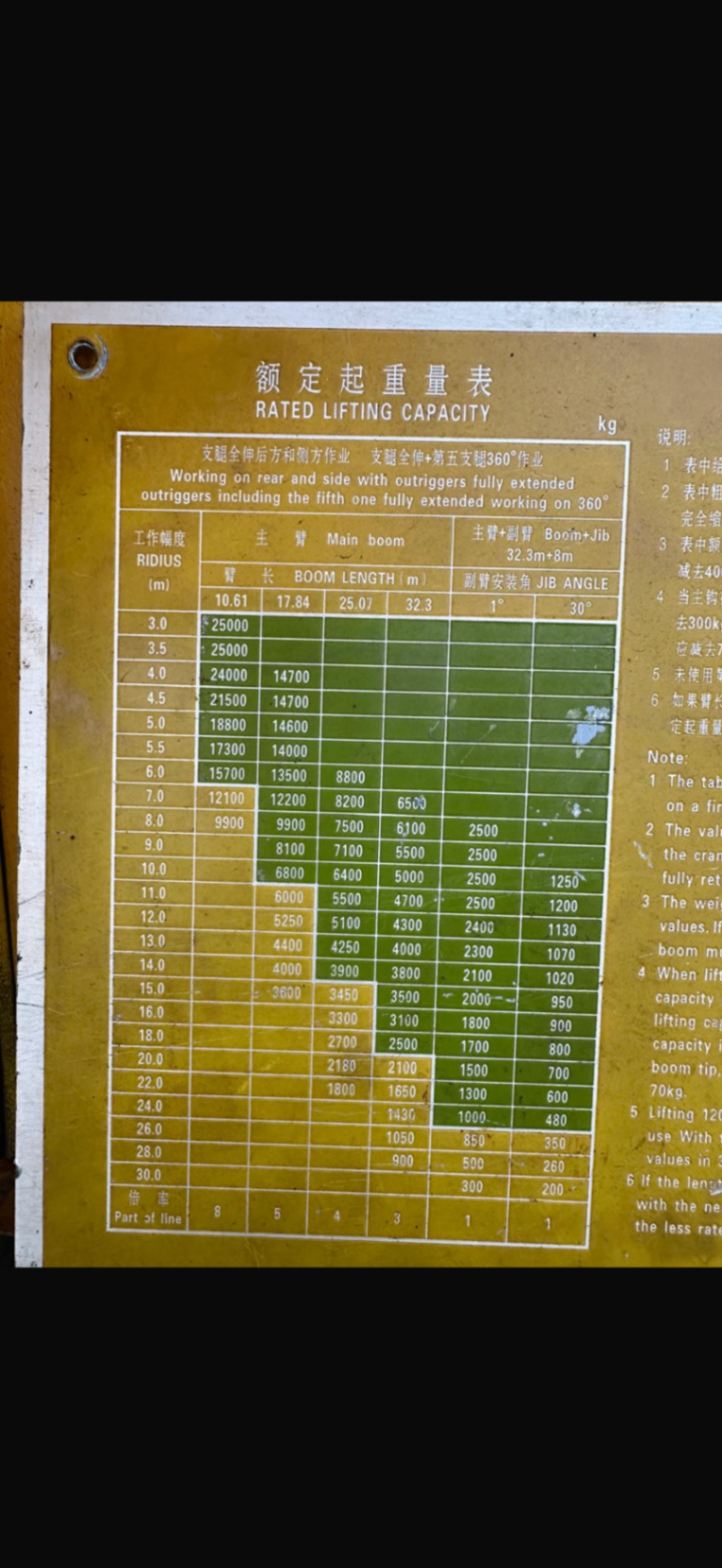 Guindaste 25 toneladas 2011 Amarelo 10 pneus novos 7043 hs 32 mts de lança 8 mts de JIB