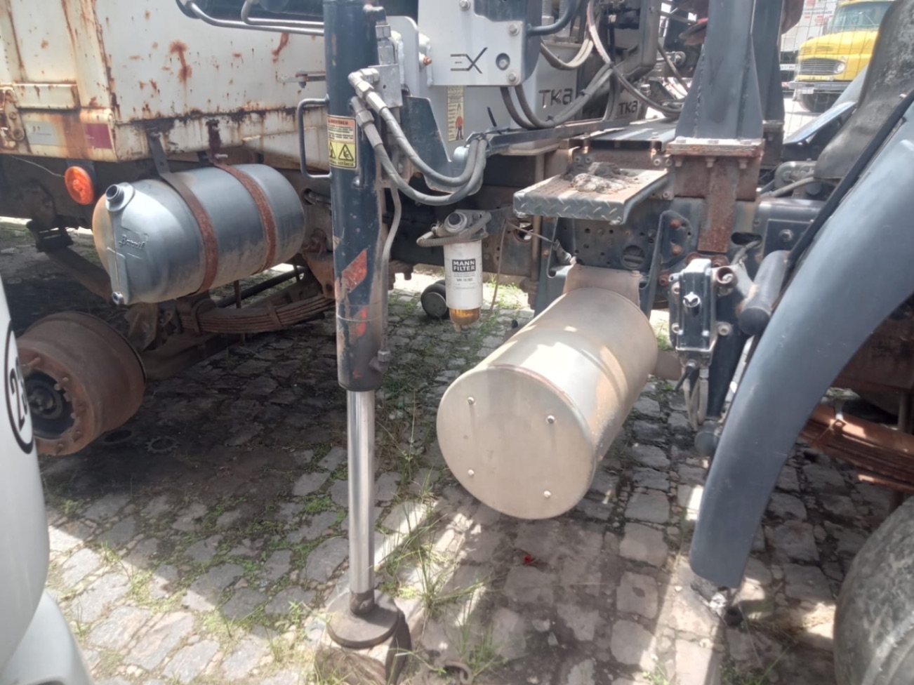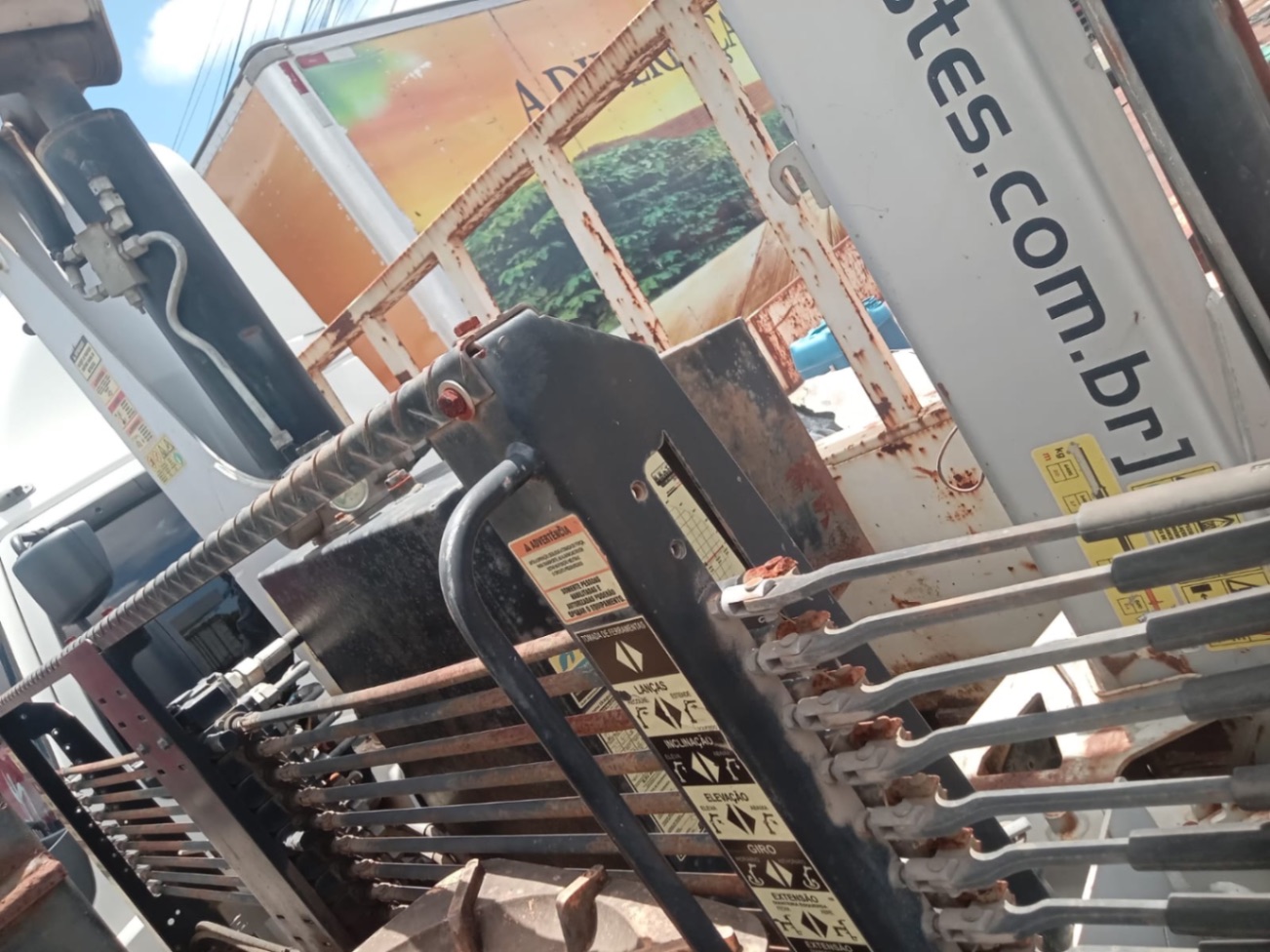 Equipamento com 3 lanças hidráulicas e 2 manuais. Está instalado no caminhão